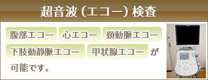 当院では、超音波を使ったエコー検査が可能です。健診メニューに追加可能です。